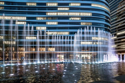 望京SOHO主水景音樂噴泉已經(jīng)進入調(diào)試階段。