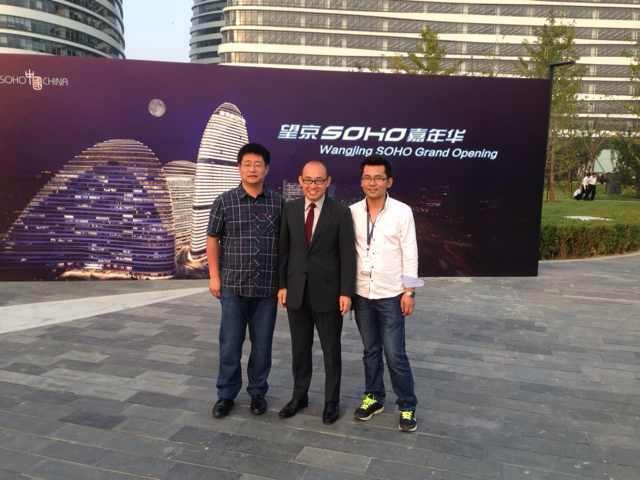 北京潛龍時代環(huán)境工程有限公司以及德國OASE項目相關負責人到場祝賀,并與SOHO中國董事長潘石屹合影留念。