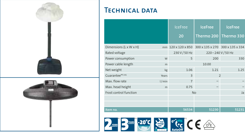 •IceFree系列產(chǎn)品使用活性加熱元件,用于持續(xù)寒冷時期對池塘的安全保護(hù),同樣也適用于淺池塘。