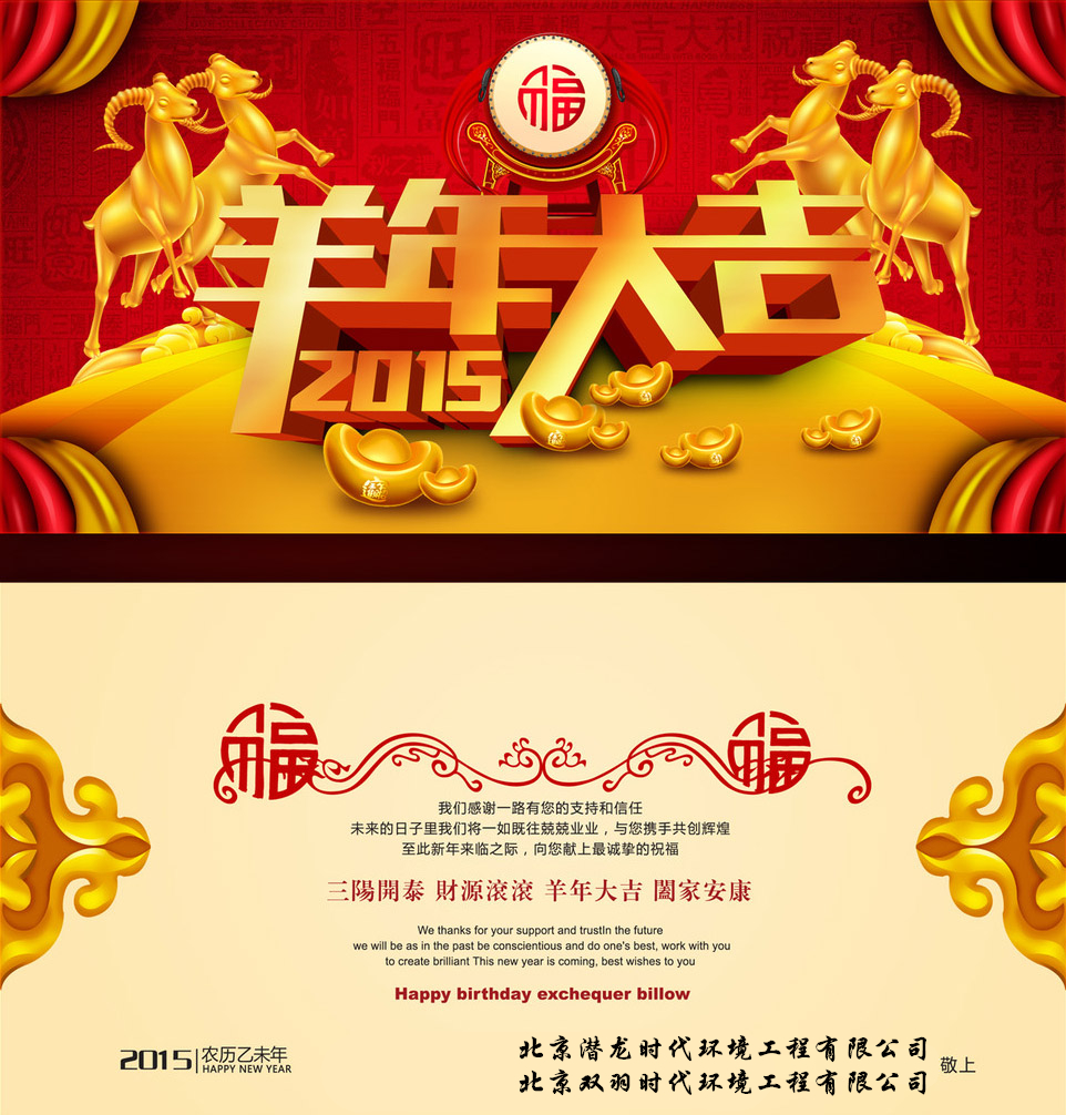 在2015年新年到來之際,北京潛龍時代環(huán)境工程有限公司恭祝各位新年快樂、身體健康、萬事如意!共同祝愿事業(yè)興旺!